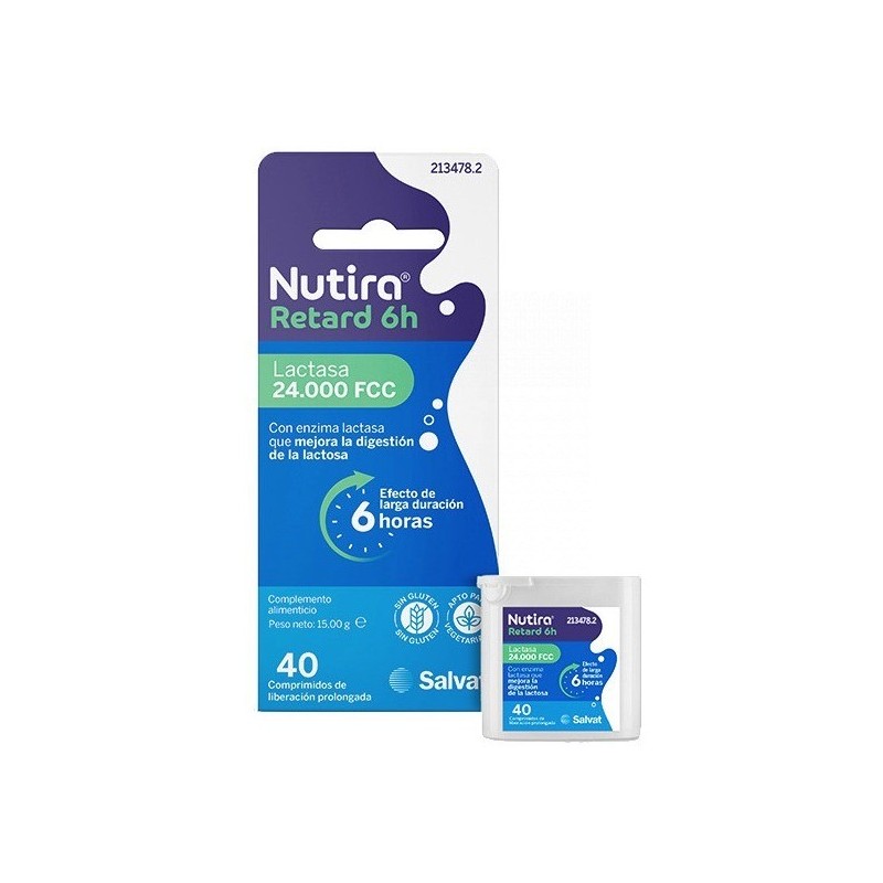 Nutira Retard 6h Lactasa 24.000 FCC es un suplemento digestivo especialmente formulado para ayudar a las personas con intolerancia a la lactosa a digerir de manera más efectiva los productos lácteos. Sus comprimidos de liberación prolongada ofrecen hasta 6 horas de alivio, sin gluten y apto para vegetarianos.
