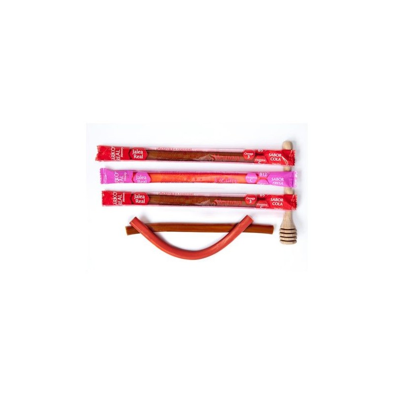 Barritas con sabor cola. Las barritas Arko Real Memory contienen Omega 3, Jalea Real y Vitaminas. Deliciosas barritas de gel dulce para activar tu mente, con vitamina B5 que contribuye al rendimiento intelectual normal.